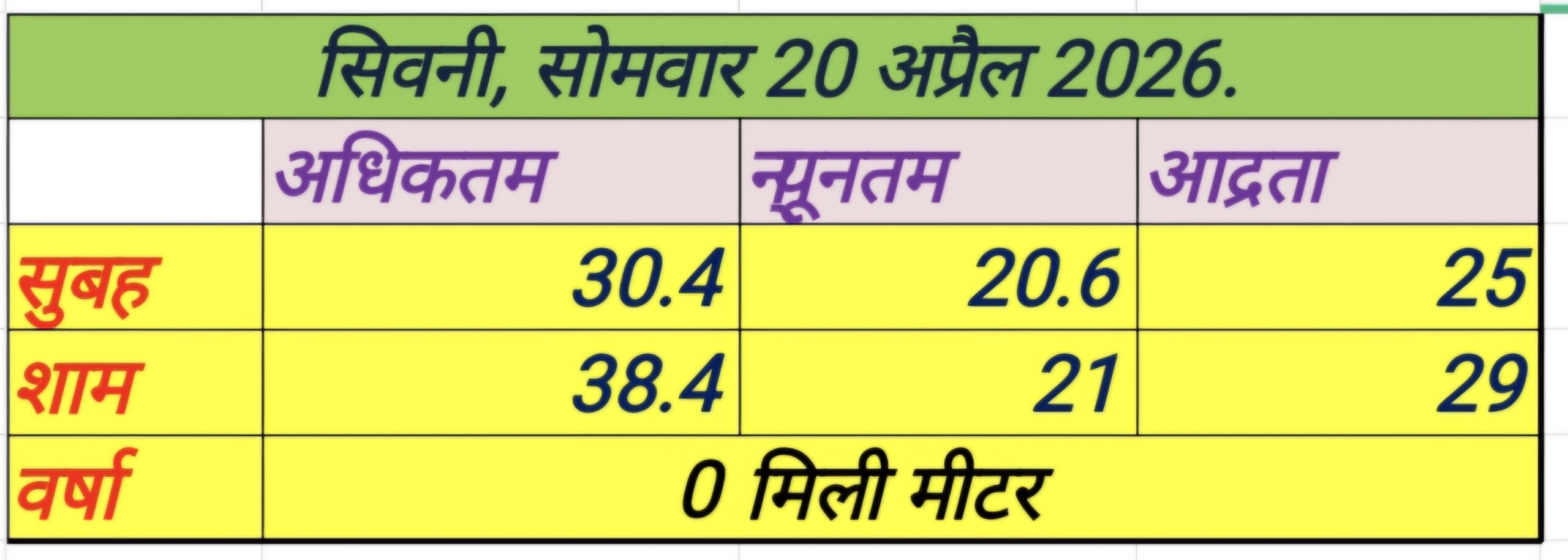 बीते 24 घंटों का तापमान रविवार 19 अप्रैल 2026 (ब्यूरो कार्यालय) सिवनी (साई)। सिवनी जिले में आज रविवार 19 अप्रैल 2026 की शाम तक रिकार्ड […]