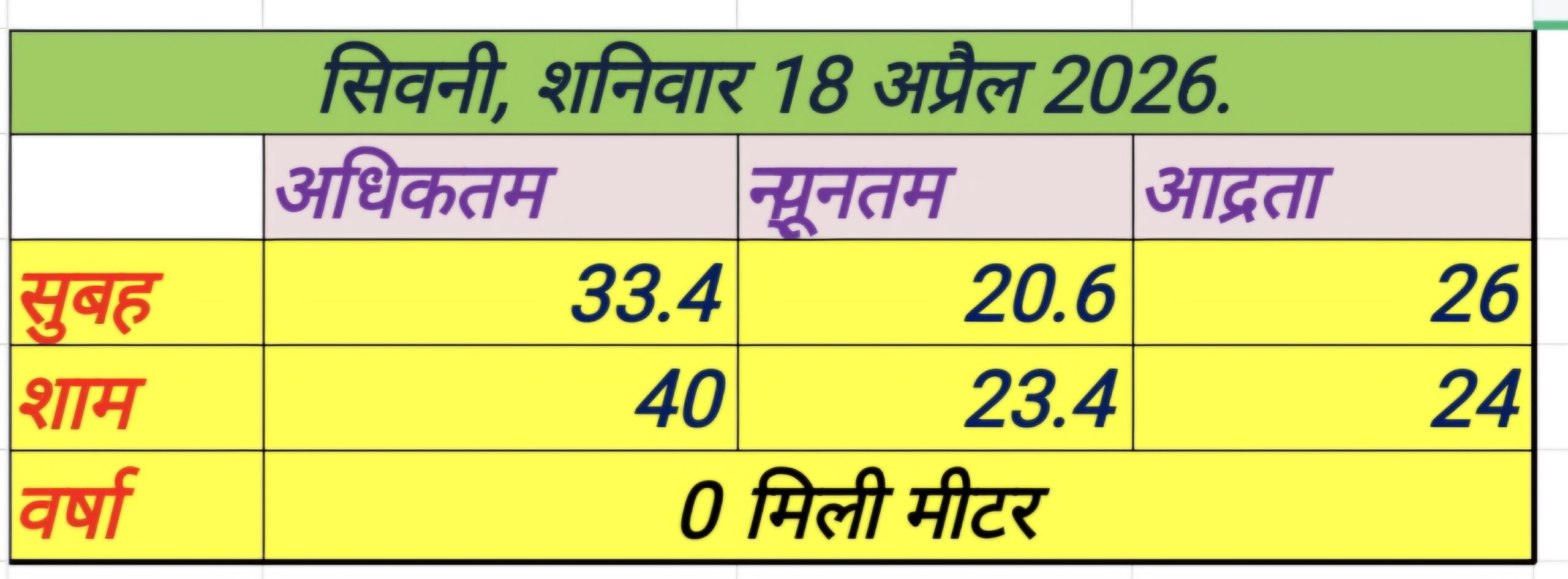 | सिवनी, शनिवार 18 अप्रैल 2026. | ||||