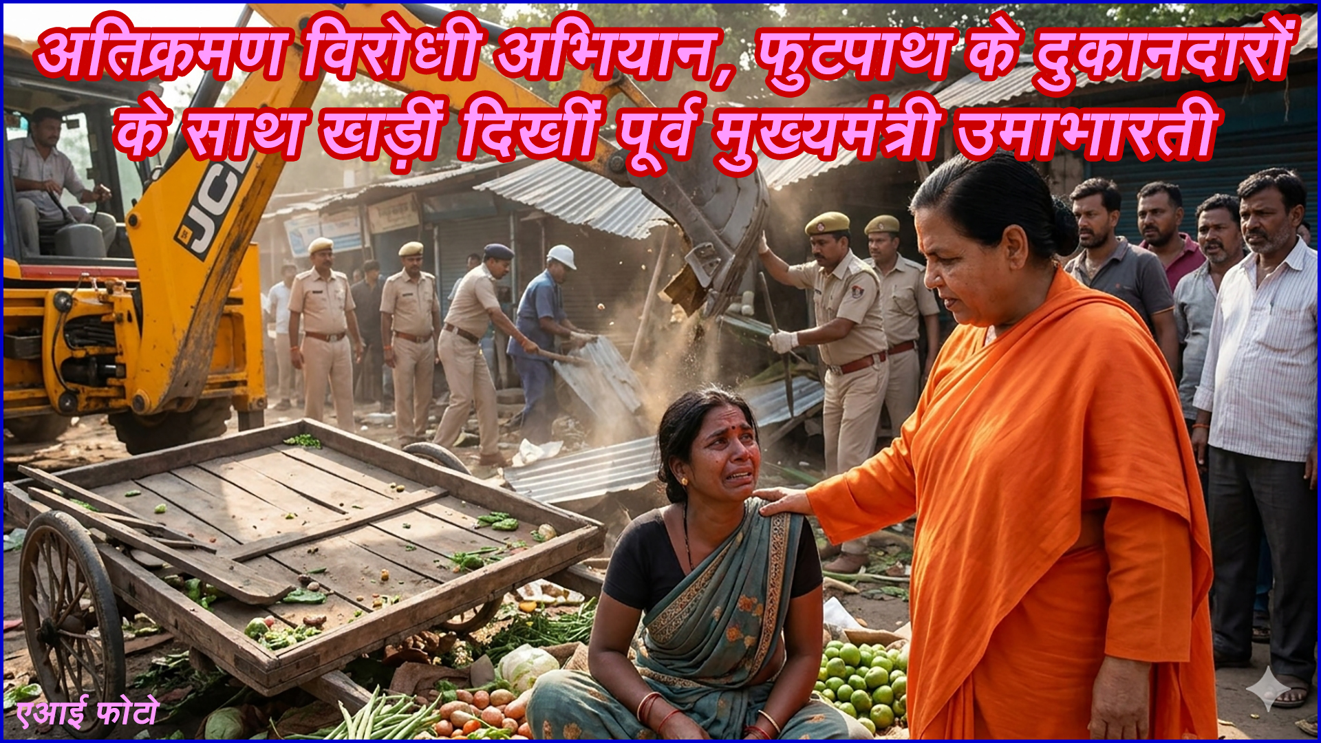 अतिक्रमण विरोधी अभियान,फुटपाथ के दुकानदारों के साथ खड़ीं दिखीं पूर्व मुख्यमंत्री उमाभारती